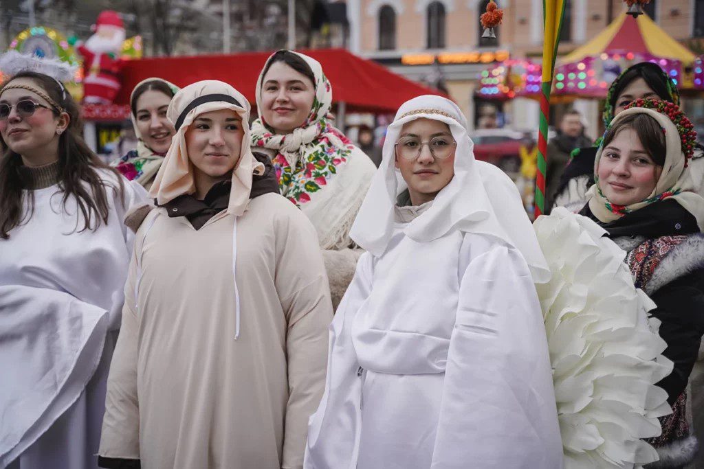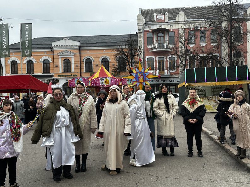Як розповіла Тетяна Прядко, координаторка проєкту “Діти та війна” БФ “Карітас Полтава”, у їхньому виступі були присутні всі ключові персонажі: волхви, пастухи, Ангел та Святе Сімейство. Кожен герой розкривав частину історії через українські колядки, серед яких – “Нова радість стала” та сучасні різдвяні пісні.